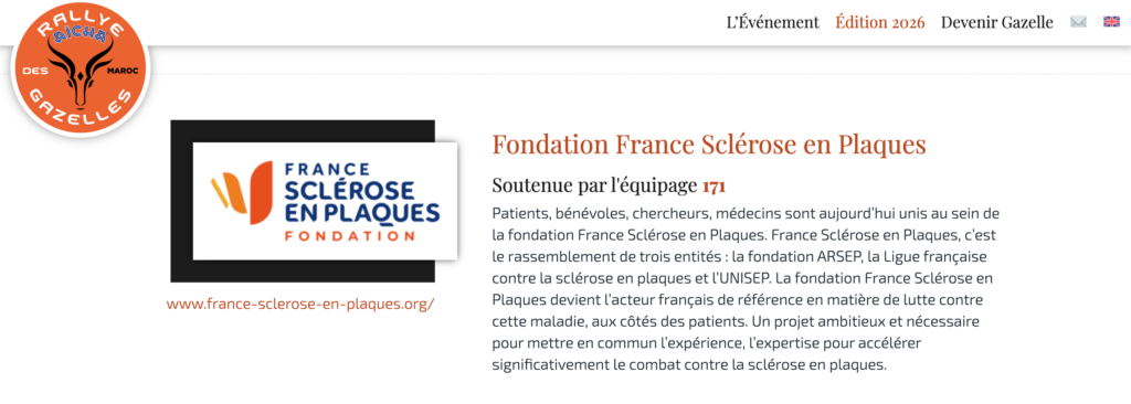 Depuis plusieurs années, nous sommes fières, en tant que Gazelles, de vivre cette aventure dans le désert tout en soutenant des causes qui nous tiennent profondément à cœur. Pour encourager et valoriser cet engagement solidaire, la société Maïenga Sports Events a lancé en 2021 l’initiative des Gazelles Engagées.
